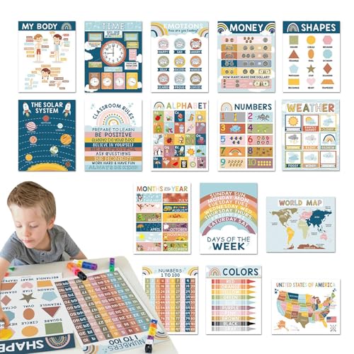 教室用英語ポスター – 16 X 教育用ウォールチャート |子供用就学前学習ポスターセット、ホームスクール教育ツール、男の子、女の子、幼児の教室学習装飾のための学習リソース