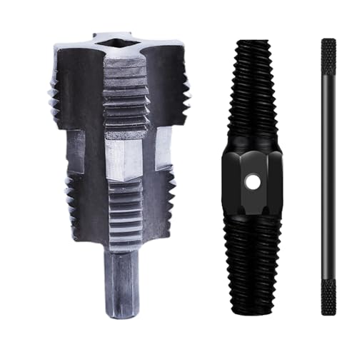 パイプ用スレッダーツールは、電動ドリルで使用可能な多機能配管修理アクセサリです。1/2″、3/4″、1″の水道管に対応し、効率的な内部スレッディングが可能です。