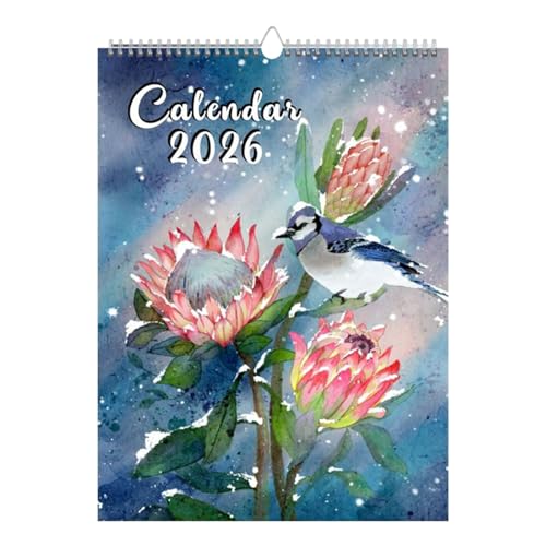 2026年の鳥好きの壁掛けカレンダー。12ヶ月分のプランニングを可能にし、リビングやキッチン、書斎、寝室に最適なナチュラルデコレーション。大型サイズで見やすく、スケジュール管理に便利です。
