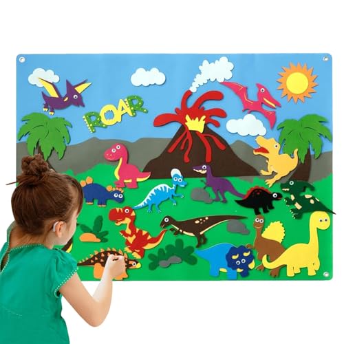 恐竜フェルトストーリーボードは、41.34X29.53インチの大きさで、幼児向けにデザインされた知育玩具です。遊びながら学べる内容が詰まっています。