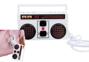 ミニアクリル90年代テープレコーダーキーチェーンレトロテープレコーダーカップルギフトキーチェーンTVラジオ-ヴィンテージファンキー、バックパックハンギングアクセサリーとユニークなキーチェーン80年代テーマパーティーデコレーション