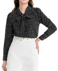 [SPRING SEAON] ボウタイシャツ 長袖 シフォン ブラウス ノーアイロン カッターシャツ 大きいサイズ オフィスカジュアル 仕事 スーツインナー ビジネス エレガント 通勤 通学 水玉 ブラック ドット柄 2L