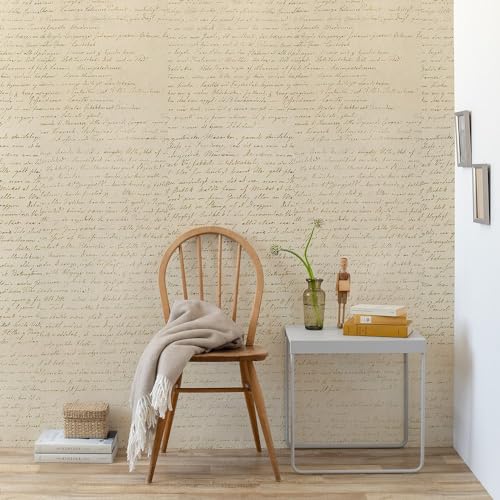 壁紙屋本舗のアンティークスタイルの英字壁紙「Mon Sucrier NMS-AD01」は、49cm×3mのサイズで、のりなしで簡単に施工可能。はがせるタイプで、既存の壁紙の上に張ることができます(受注生産品・キャンセル不可)。