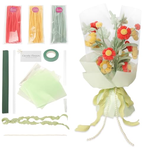 LOZIZI 手芸モールキット パフフラワー花束 1.5 倍材料量 2 倍包装紙 詳細動画教程付 高密度素材 卒業式 発表会 母の日誕生日 バレンタイン ギフト贈り物 DIY 手作りセット