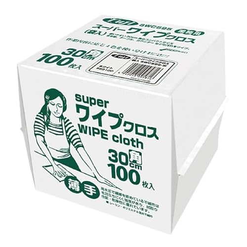 フジ スーパーワイプクロスは、30cm角の使い捨て型クリーニングクロスです。100枚入で、柔らかく吸水性に優れ、さまざまな用途に最適です。手軽に清掃ができ、衛生面も考慮された製品です。