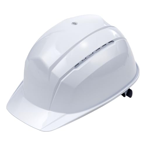 トーヨーセフティーのコンパクト軽量型ヘルメットは、白色で通気孔付き、重さ332gのABS樹脂製です。No.341F-OTNモデルで、作業やスポーツに最適な安全性を提供します。