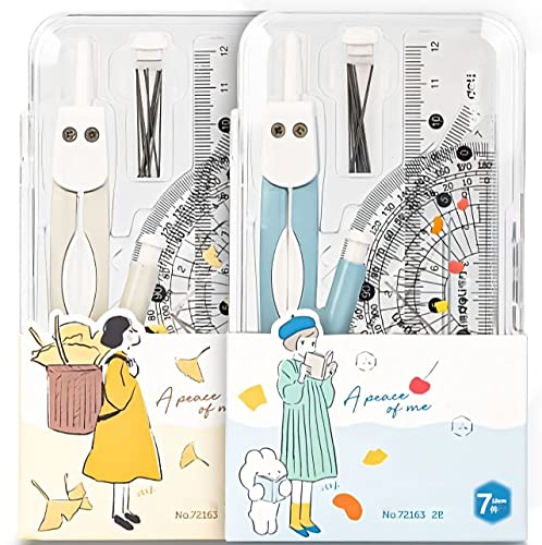 TokyoTomiのコンパスセットは、金属素材と塗装仕上げが特徴です。直定規、三角定規、半円分度器など7点が揃い、可愛らしいブルーのデザイン。作図や幾何学に最適なツールです。