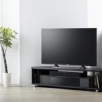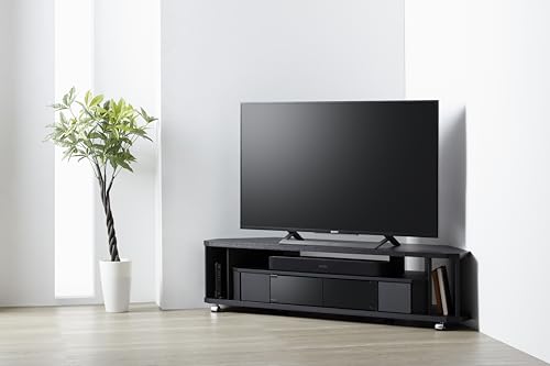 朝日木材加工のテレビ台Nook 60型は、幅140cmでブラックカラー、キャスター付きで移動も簡単。コーナーにも対応しており、スタイリッシュなデザインが特徴です。