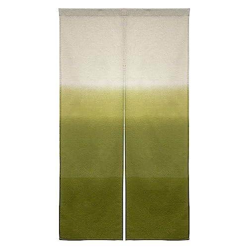 のれん 暖簾 おしゃれ カーテン 間仕切り 仕切りカーテン 目隠し 和風 和柄 和モダン 和風モダン 和風暖簾 日本 無地 シンプル グラデーション ぼかし染め風 段ぼかし 麻風 巾85cm 丈150cm (鶯色)の高価買取