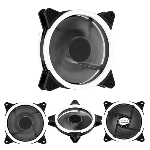 Novonest PCケースファンは、120mmサイズの白いLEDリングが特徴の静音タイプ。厚さ25mm、3ピン接続で1300rpmの回転数、3本セットで提供。冷却性能に優れ、静かな動作を実現。