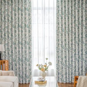 AZRA カーテン 遮光 99.9%以上 北欧 葉柄 幅100丈178CM 2枚セット 形状記憶 UVカット 断熱 防寒 節電 可愛い 爽やか リビング 喫茶店 幼稚園