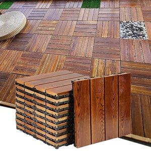 ウッドパネル ジョイントマット ウッドタイルフロアデッキ 木製 天然 無垢材 炭化 敷くだけ 置く 屋外屋内適用 ベランダ/庭/バルコニー, 120枚