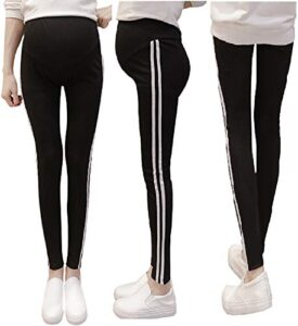 (Miwoluna) マタニティ レギンス タイツ スパッツ サイドライン ストレッチ ウエストサイズ調整可能 ブラック L