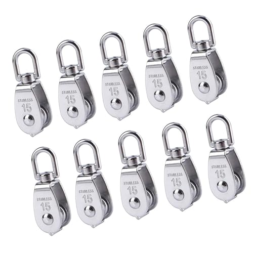 ステンレス製滑車(プーリー)は、耐食性に優れた18-8ステンレスを使用し、呼び15mmで、貨物輸送や荷揚げに最適です。10個セットで提供されます。