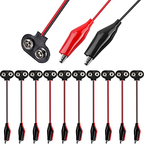 Xiatiaosann 9V電池用バッテリースナップコネクタ、ワニ口クリップ付きのケーブルで、LED照明、DIYカー、RCロボットなどに最適。黒色、10個セット。