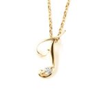 PLUSTER ネックレスは、イニシャルデザインの人気アイテム。素材はK10イエローゴールド、天然ダイヤ0.02ct付き。チェーンの長さは40cm。ギフトボックスセットで、誕生日や母の日に最適なジュエリーです。