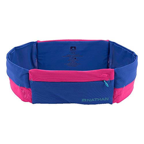 Nathanランニングベルトはバウンスフリーで軽量なウエストパック。2つのジッパーポーチがあり、全てのスマートフォンに対応。男女兼用、ネイビー、XSサイズ。