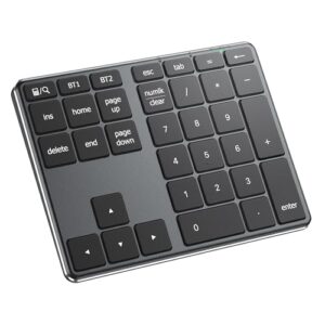 iClever テンキー Bluetooth ワイヤレス 数字 キーボード パンタグラフ式 Type-C充電 超薄型 金属構造 numlock連動 2台まで接続可能 ブルートゥース ナンバーパッド 34キー mac テンキー 片手デバイス Windows/iOS/Android 対応 IC-KP10 (ブラック)