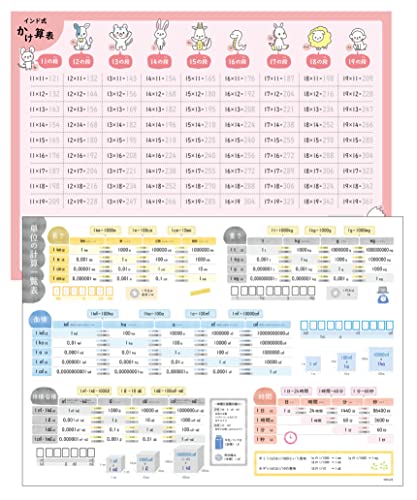 インド式単位の計算表が記載されたお風呂ポスター。干支も覚えられるデザインで、A2サイズ(60×42cm)。日本製で、算数や学習に役立つ知育ポスターです。