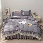 この布団カバーセットは、シングルからダブル対応で、フリル付きの可愛いデザイン。肌に優しく、北欧風のおしゃれなスタイル。丸洗いOKで清潔感もあり、ベッドスカートや枕カバーが含まれています。