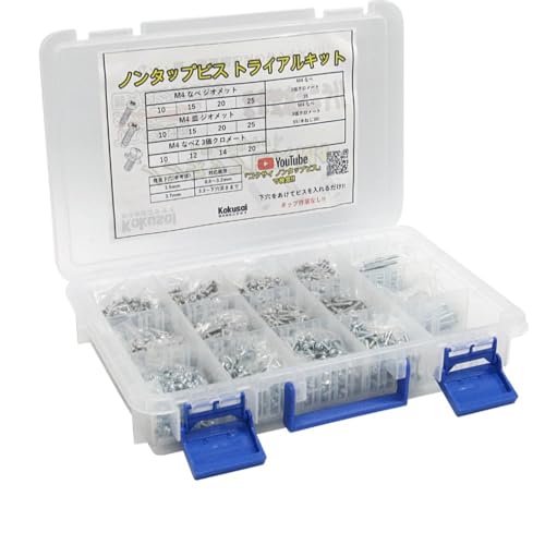 コクサイ ノンタップビス トライアルキット M4 大は、ねじ穴の下穴加工が不要なビスのセットです。木材や合板に適しており、簡単に施工できます。耐久性が高く、効率的な作業が可能です。