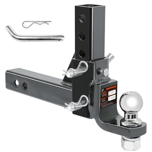 NUCHOICEの高耐久トレーラーヒッチボールマウントは、7500ポンド容量、2インチボール、8段階調節可能。9-1/2インチドロップと8-1/4インチライズ、ピンロック&クリップ付きでトラックやRVに最適。