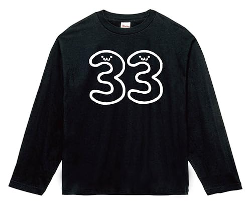 [サモエスキー] 33 さんじゅうさん 三十三 数字 ナンバー 記号 文字 筆絵 イラスト おもしろ Tシャツ 長袖 ブラック L 高価買取中