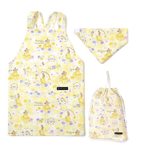 COLORFUL CANDY STYLE のディズニー 2点セット。巾着と体操服袋、バッククロスエプロン(100-120cm)、調理実習やお手伝いに最適。三角巾付き。女の子向けのかわいらしいBelleデザイン。