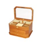 ISCBAFYXの無垢材ジュエリー収納ボックスは、ラグジュアリーなデザインで2層構造。ロック付きで安全にリング、イヤリング、ネックレス、ブレスレットを収納できます。透明ガラスの美しい仕様。