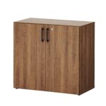 オフィスコムの木製書庫レモダは、幅800mm、奥行443mm、高さ732mmの2段扉付き下置タイプです。ナチュラルなデザインで、法人様向けに最適な収納ソリューションを提供します。
