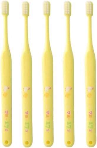 マミー17 M(ミディアム)イエローの子どもの仕上げみがき歯ブラシは、5本セットで提供され、柔らかい毛が特長です。お子様の口に優しく、効果的なオーラルケアをサポートします。持ちやすいデザインで、仕上げ磨きに最適です。