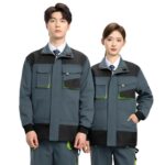 Vailaipupy作業着防寒上下セットは、240g綿風帆布製で多層補強、可調式裾と立襟デザイン。工具収納ポケット付きで男女兼用、工場作業に最適な緑灰色のスーツ。