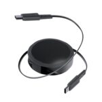 オウルテックの片引き巻取り式USB Type-C to Cケーブル。長さ120cm、PD60W対応でデータ通信可能。温度センサー搭載。iPhone 17/16/15シリーズやスマートフォン、タブレットに対応。カラーはブラック。