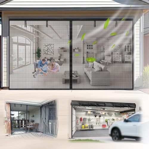ガレージ用のハンズフリーガレージドアスクリーンです。強化グラスファイバー製で、マグネット開閉が可能。取り付け簡単で、サイズは466x248cm。パティオやパーゴラにも適しています。