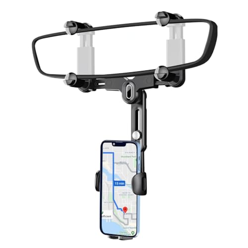 OFBANDのリアビューミラー電話ホルダーは、360°回転可能で格納式。ユニバーサルデザインで、すべての携帯電話と車に対応。2023年アップグレード版。