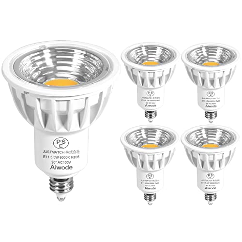 Aiwode 5.5W LED電球 E11口金、昼光色6000K、550lm、広角90°。50-60W形相当、調光不可。キッチンやオフィス、レストランに最適。PSE認証済、5個セット。