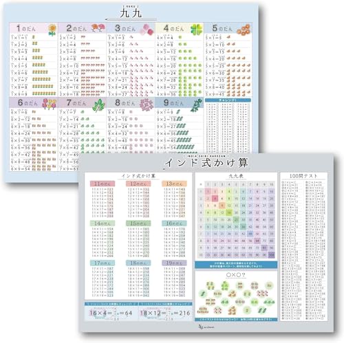 お風呂ポスター 九九表・インド式かけ算表の2枚セット B3は、子どもの算数学習を楽しくサポートするポスターです。水に強い素材で、お風呂場でも安心。親子で一緒に楽しむ、知育アイテムとしておすすめです。
