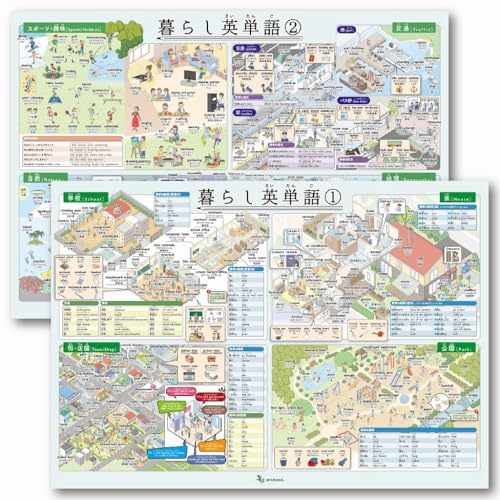 お風呂ポスター 暮らし英単語 2枚セット B3サイズ(364×515mm)は、子供向けの英語学習教材です。楽しく知育できるデザインで、家庭での語彙力向上をサポートします。