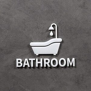 Signjapan ルームサイン ピクトサイン BATHROOM バスルーム お風呂場 浴室 ブラック/ホワイト ドアサイン 表札 室札 サイン (Type1(ホワイト))