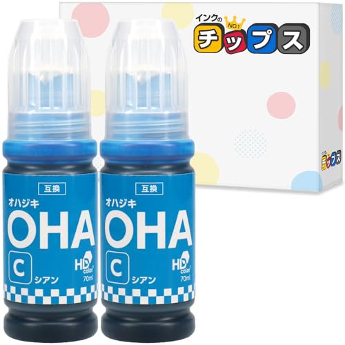 オハジキ互換 OHA-C シアン 2本セットは、エプソン用の70mlインクボトルです。エコタンク対応で、プリンタを守る設計。ISO認証取得済み。