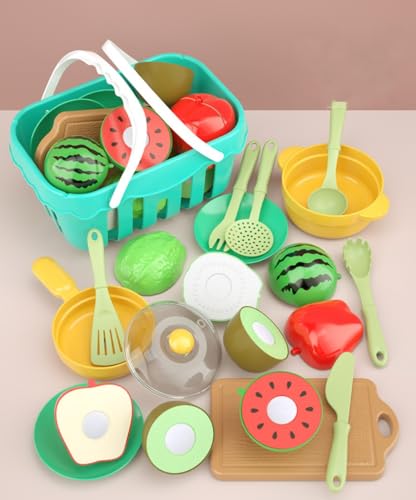 おままごとセット 知育玩具 ままごと 17点セット おもちゃ クリスマスプレゼント ごっこ遊び 収納かご付き リアルな食材 果物野菜 切る遊び キッチンセット 親子遊び 子供 贈り物 誕生日プレゼント ギフト 入園お祝い (ライトグリーン, 17pcs)の製品情報