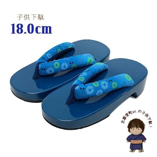 子供用下駄 18.0cm 浴衣向けの青系「ねじり菊」デザイン。品番GTΚ180-2404、重さは125g。おしゃれで快適な夏の足元にぴったりのアイテムです。