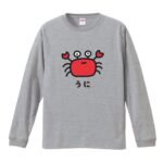 おもしろTシャツ イラスト グレー 長袖 Mサイズ。カニとうにをデザインしたメンズ用ロンTで、ユニークな漢字や名言入り。プレゼントやギフトにも最適です。