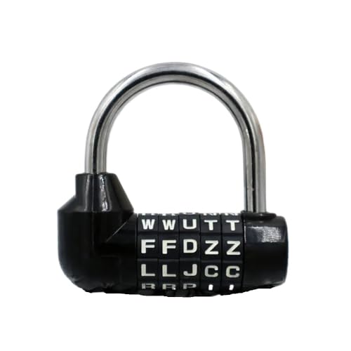 シャックルの5桁数字ワードロック、ワードコンビネーションセキュリティ南京錠です。硬化鋼とプラスチックシェルのブラックデザインで耐久性も高く、セキュリティを強化します。