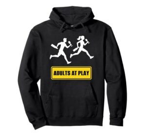 大人用 at Play 黄色い道路標識 男性 女性 ジョギング ワイングラス パーカー