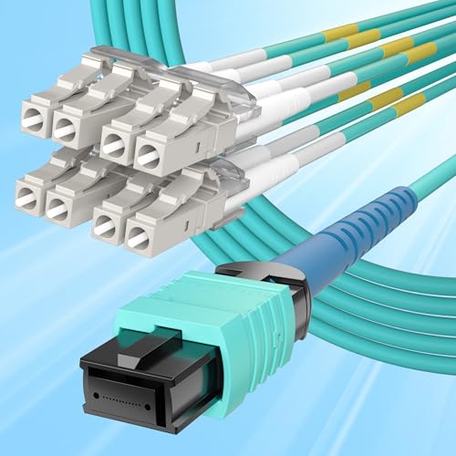 10Gtek 光ファイバーケーブル。MPO-8X LCファンアウト、OM3 MMF 8コア、QSFP+トランシーバー用。長さ1m/3.3フィート、ブレイクアウト0.5mで高性能通信を実現。