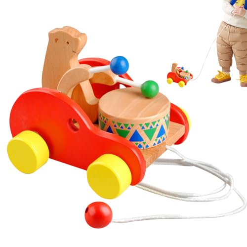 引き車おもちゃ,木製の小熊が太鼓を叩く子供用の乗り物 おもちゃの車両,幼児 歩行 おもちゃ | 男の子 女の子 幼児 幼稚園 保育園 室内 プレイ 誕生日 プレゼント リビング プレイルーム 公園 遊び 用の製品情報