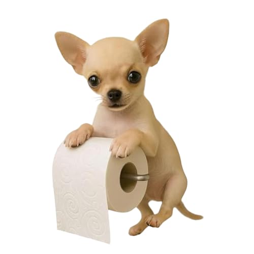 かわいいチワワ犬のトイレットペーパーホルダー。壁取り付け式で、ユニークなデザインが浴室を楽しく演出。2025年の新アイテムで、トイレットロールをスタイリッシュに収納。