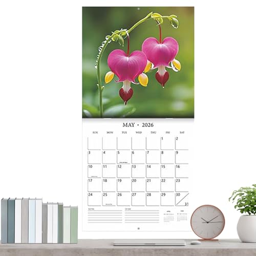 ノーブランドフラワーモチーフカレンダー 2026年版。旅行や職場、自宅の整理に最適な月間スケジュールを提供します。