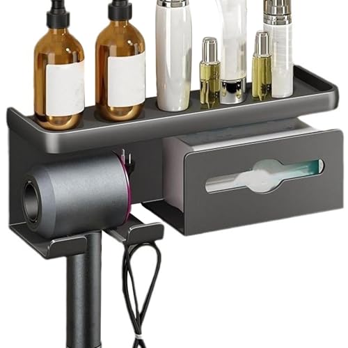 Dfyiqの3-in-1ヘアドライヤーホルダーは、壁掛け式で、バスルームや寝室に最適。ドライヤー、ティッシュ、化粧品を整理できます。